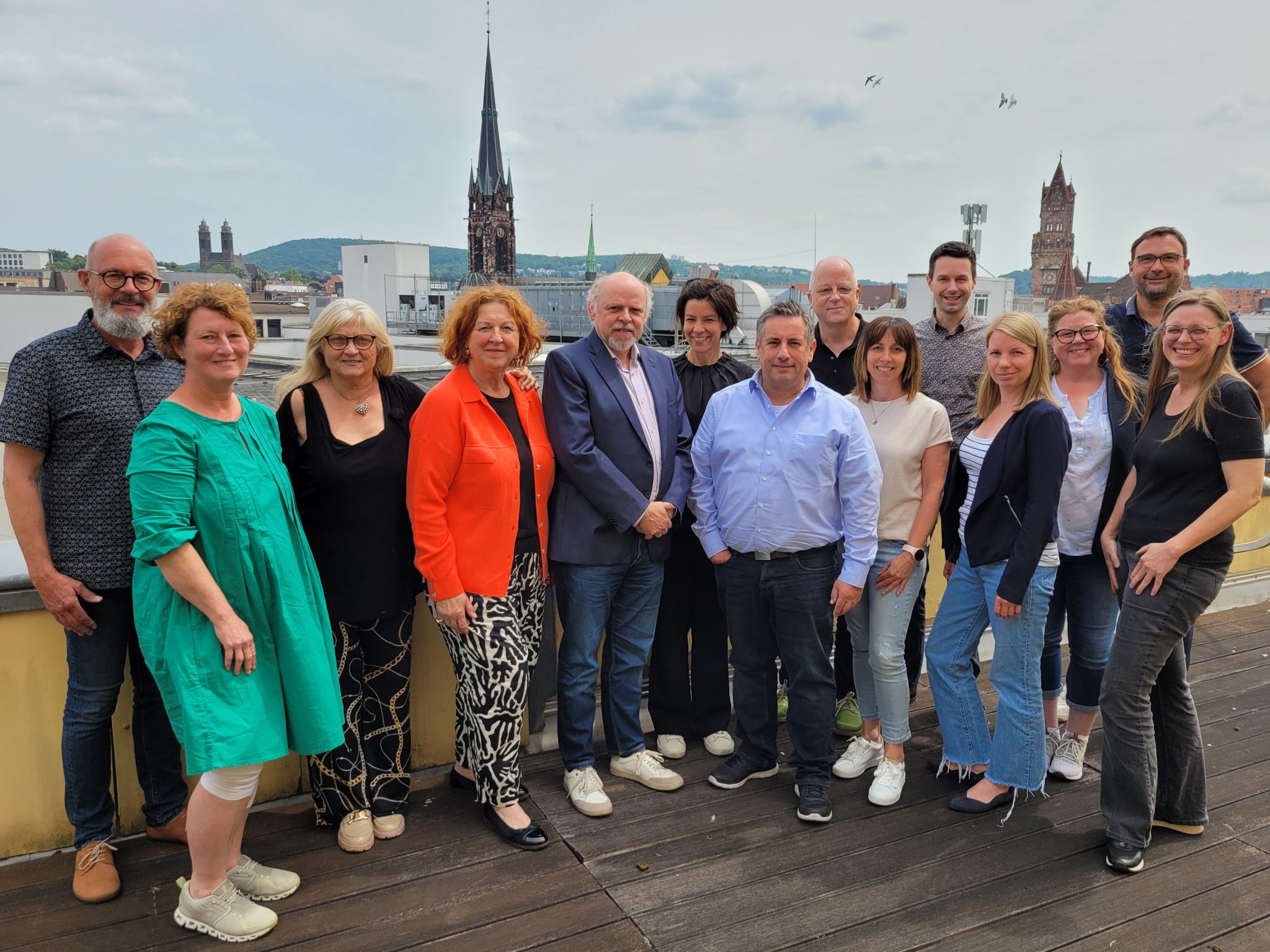 BU 2: V.l.n.r.: Axel Birkenbach (VHS St. Wendel e.V.); Elke Leonhardt-Jacob (VHS Neunkirchen); Silvia Debold (VHS Homburg e.V.); Marika Flierl (Biosphären-VHS St. Ingbert); Stefan Dewes (VHS Dillingen e.V.); Angélique Groß (VHS Lebach e.V.); Markus Bock (KVHS Saarlouis); Frank Schuppener (VHS Illingen e.V.); Martina Lang (KVHS St. Wendel); Andreas Obster (VHS Saarlouis); Sarah Falkenrich (KVHS Neunkirchen); Iris Bungert (VHS Sulzbach); Lars Hüsslein (VHS Völklingen); Ulrike Heidenreich (Verband der Volkshochschulen des Saarlandes e.V.)